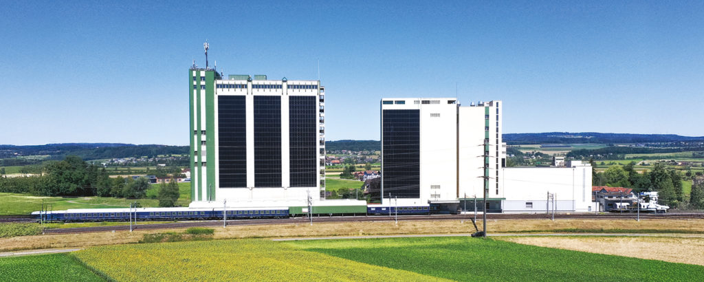 Seit 2021 deckt eine der grössten vertikalen Solaranlagen der Schweiz, die sich auf verschiedenen Türmen des Firmengeländes befindet, einen Teil des Strombedarfs und reduziert die CO2-Emissionen erheblich. Die Gesamtfläche der auf den Dächern und Fassaden installierten Photovoltaikmodule beträgt 2’555 m2. Diese produzieren jährlich mehr als 410’000 kWh Strom (entspricht dem Jahresverbrauch von etwa 82 Einfamilienhäusern), der während der Produktionszeiten zu 100 % in die Produktion eingespeist wird und die CO2e-Emissionen um 52.5 Tonnen reduziert.