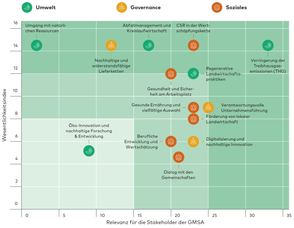 Die Wesentlichkeitsmatrix unterstützt die GMSA dabei, die von internen und externen Stakeholdern priorisierten Themen in ihre Strategie zu integrieren.